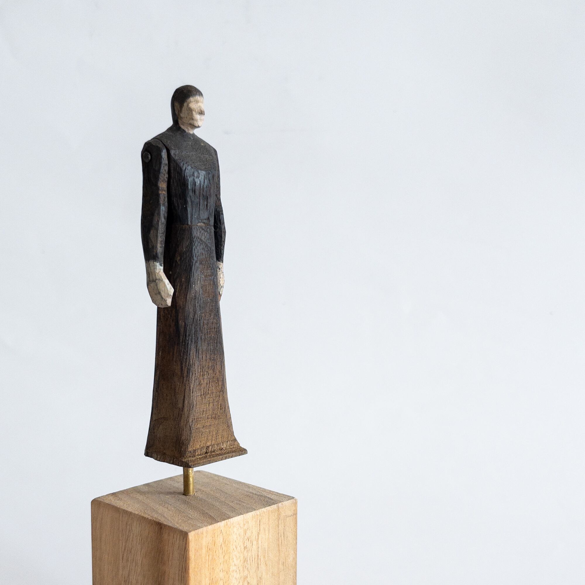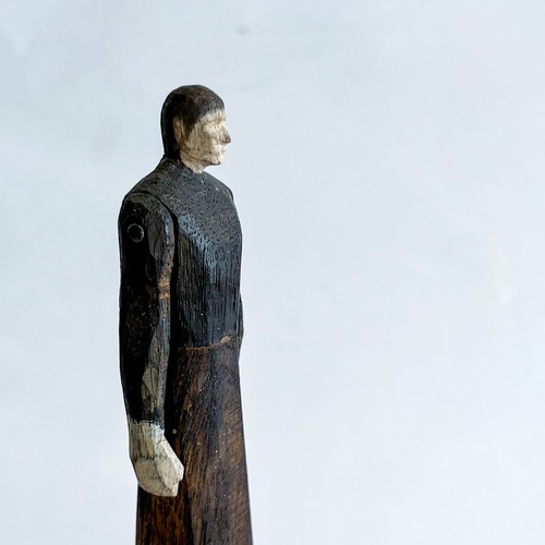 olectronicaの木彫シリーズです。 腕は固定されておらず動きます。 サイズ:h170mm(人形部分110mm+台高60 × 幅40mm) 材質:楠木
