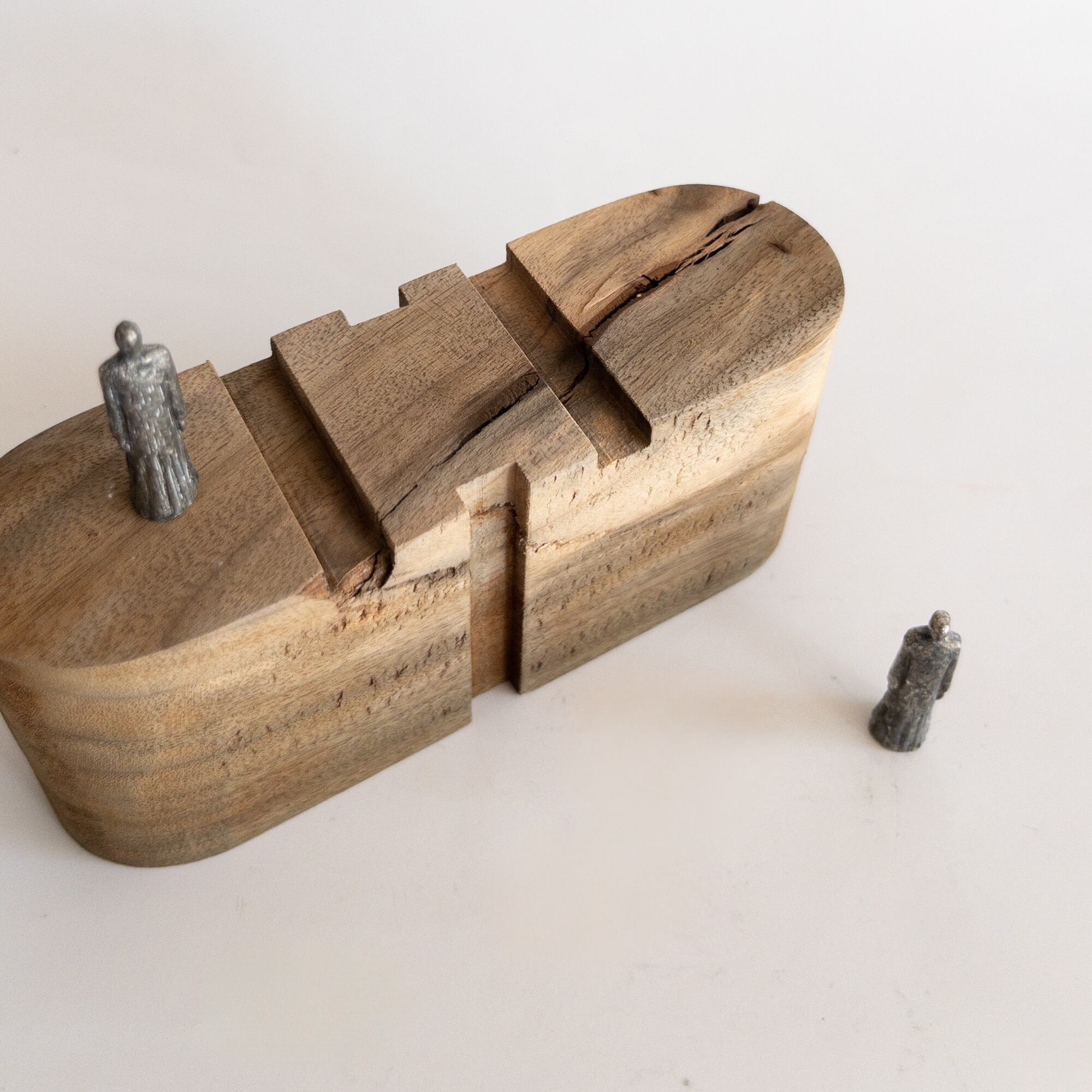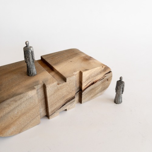 構造物と小さな人(2体 素材:ピューター)が入ったセットです。構造は決められた置き方は無く、人との組み合わせ方は自由です。専用の紙箱に入れてお届けしますので、箱を展示台の様にしてお愉しみ頂くことも出来ます。