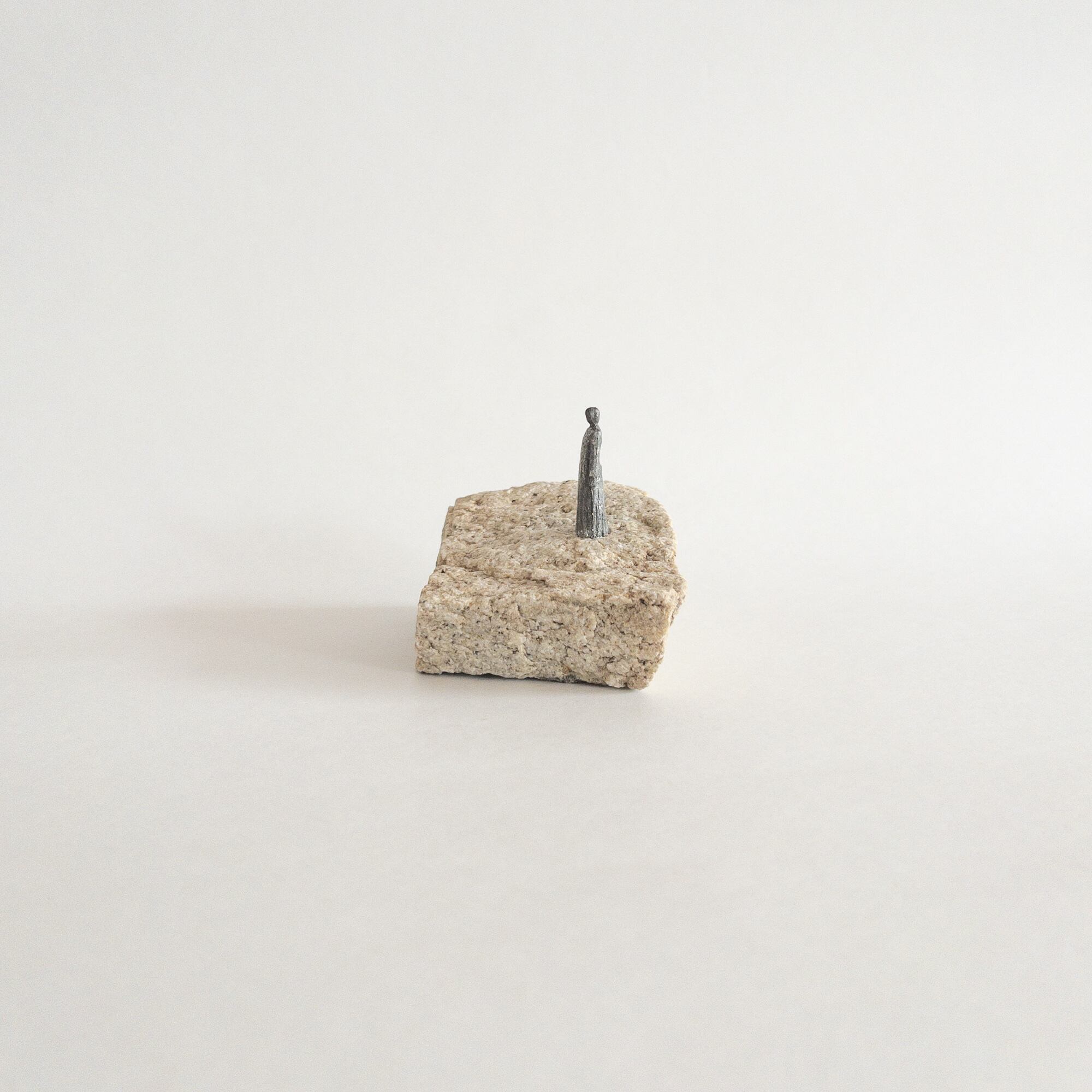 自然石とピューターフィギュアを組み合わせ風景を作っています。石とフィギュアは心棒で固定しています。