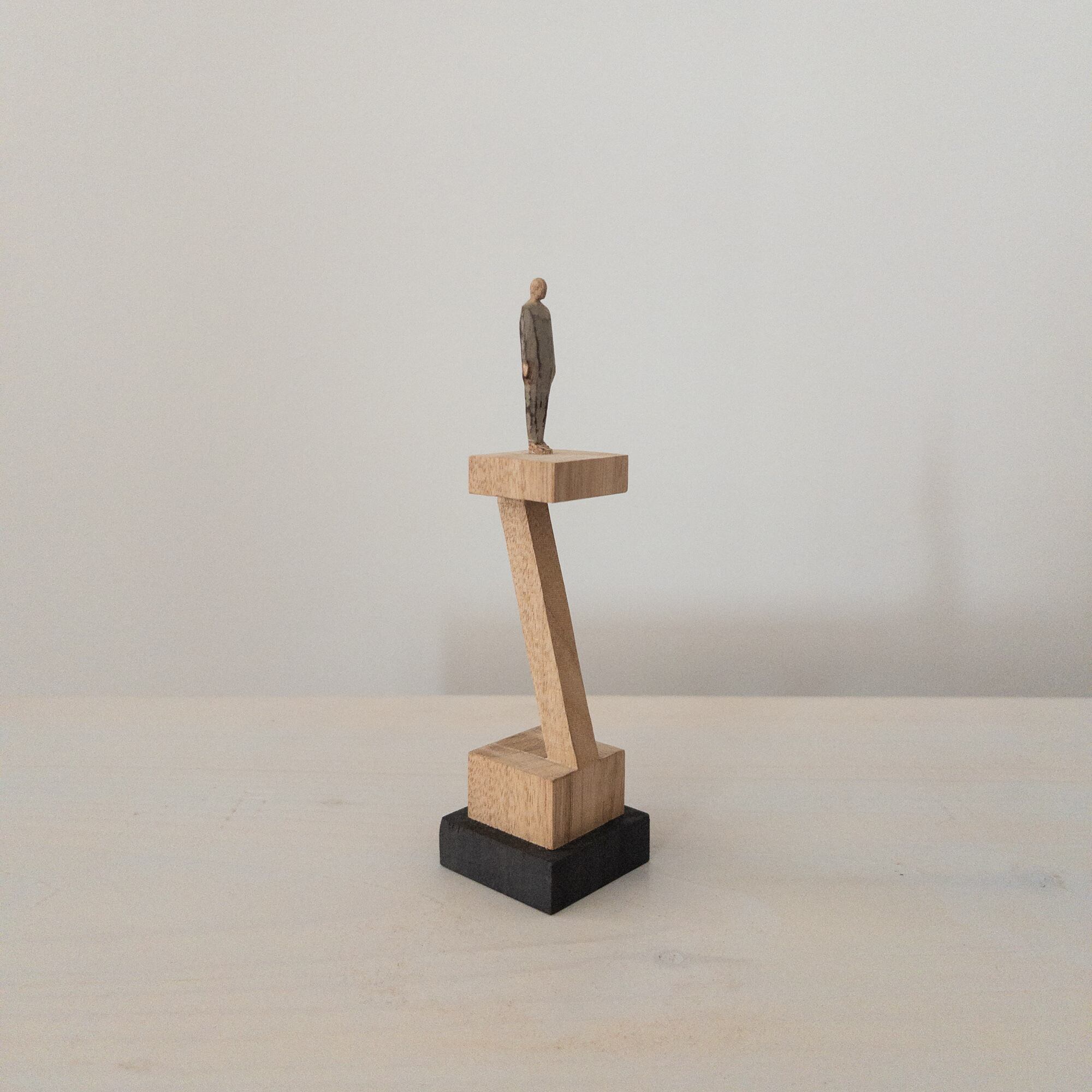 olectronicaの小さな木彫シリーズです。 下の黒い台以外は、一つの木から彫り出しています。 サイズ:h135mm (人形部分40mm+台高95 × 幅35mm) 材質:楠木 着色