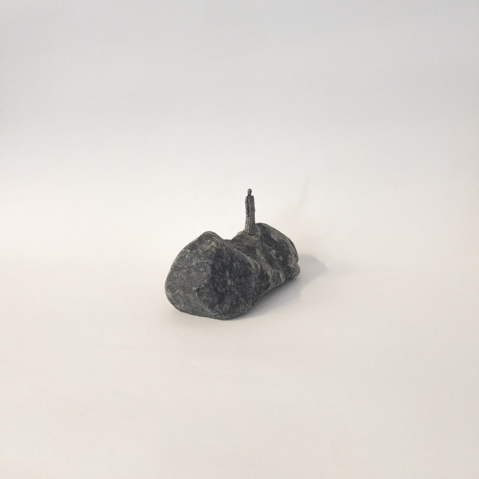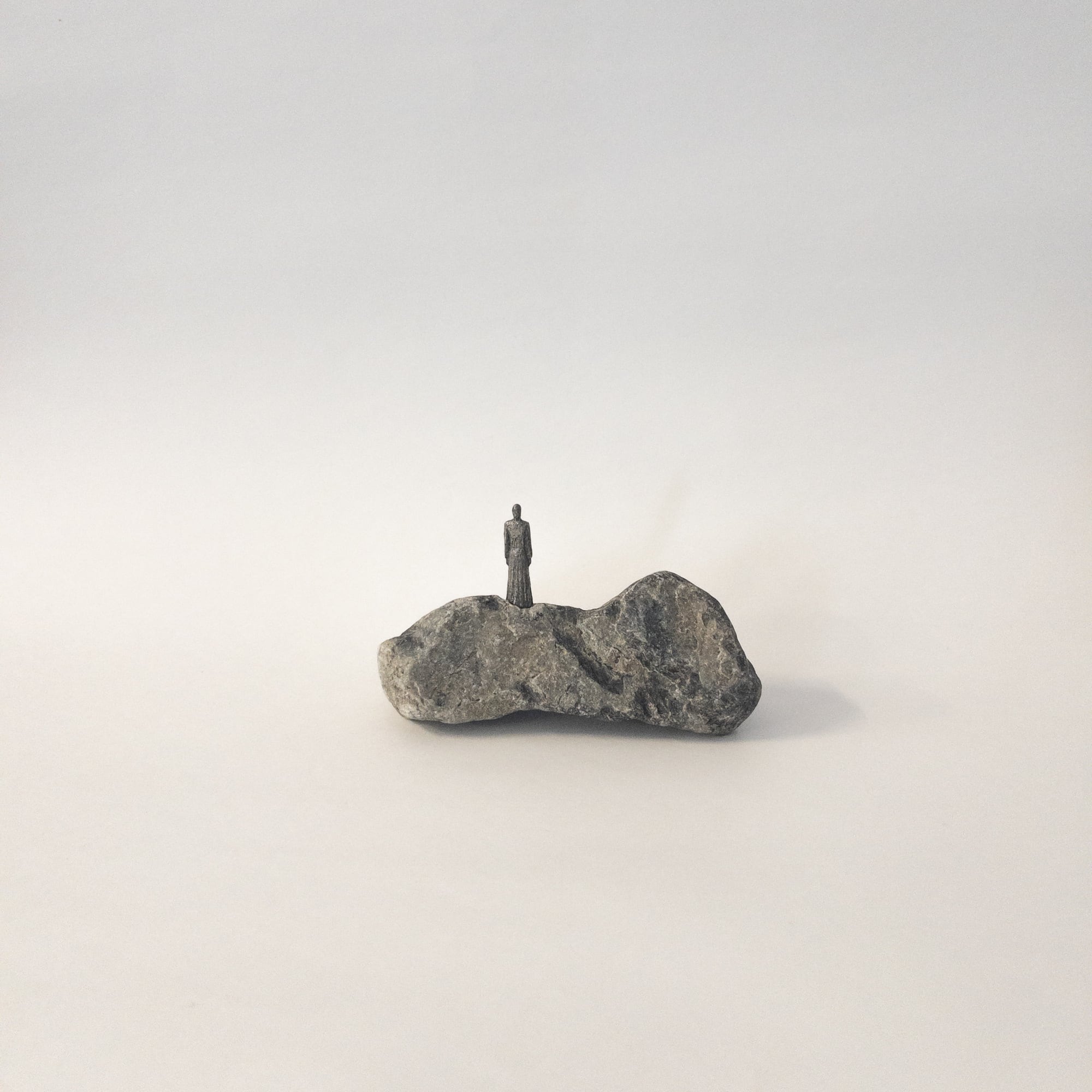 自然石とピューターフィギュアを組み合わせ風景を作っています。石とフィギュアは心棒で固定しています。