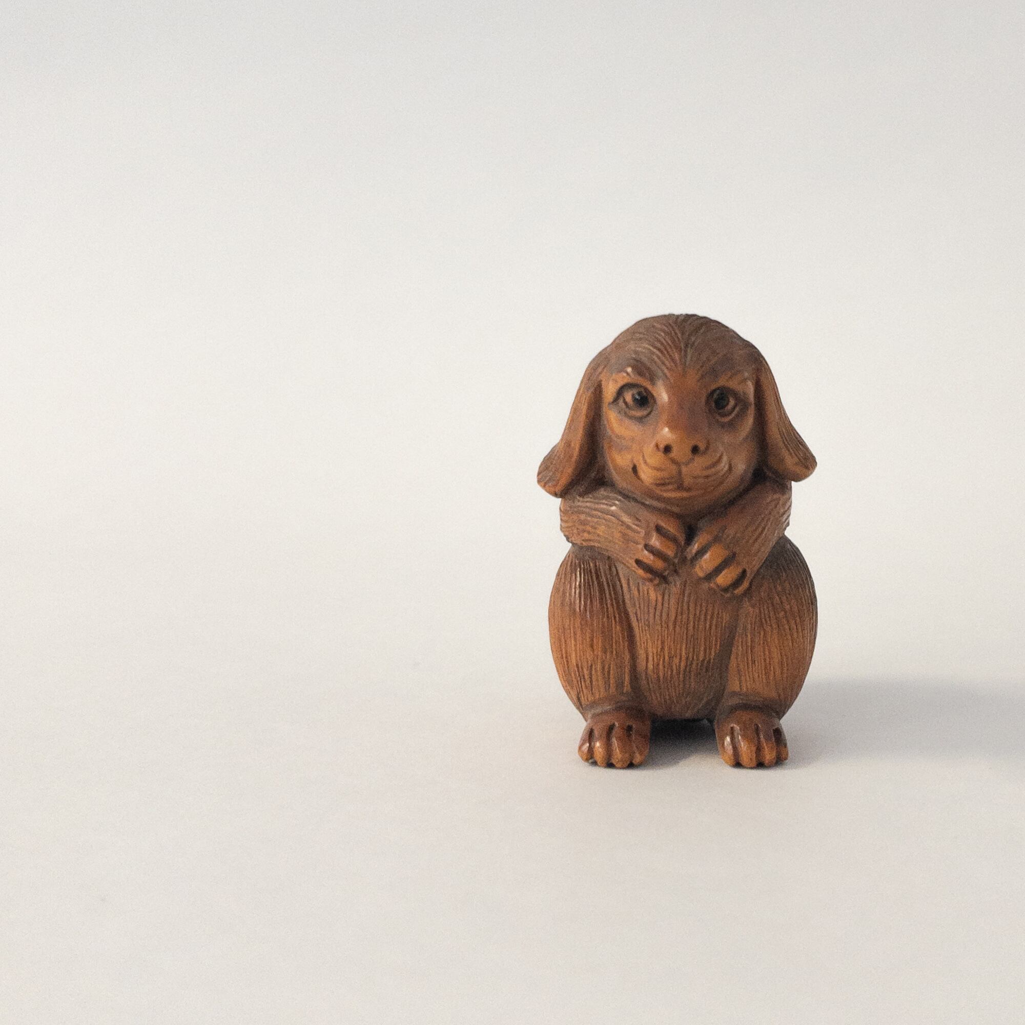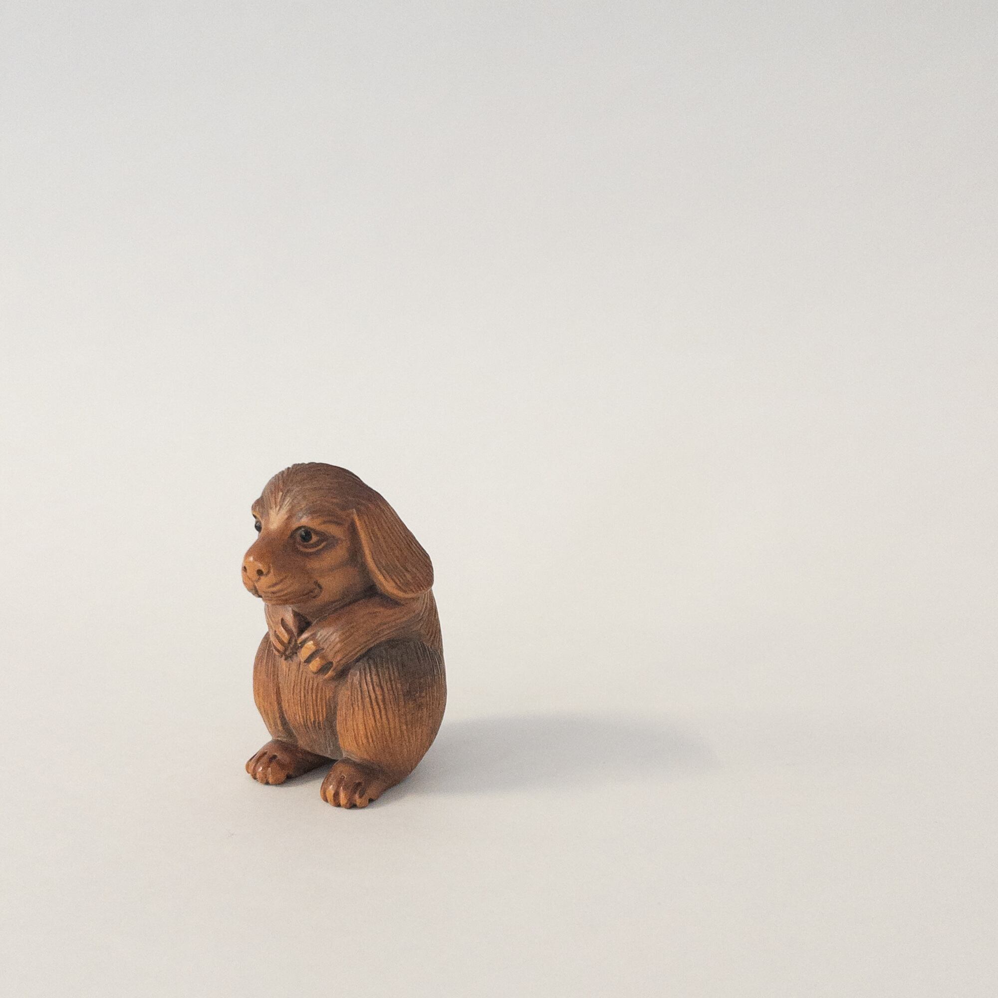 (AN-36) 根付 犬 木彫