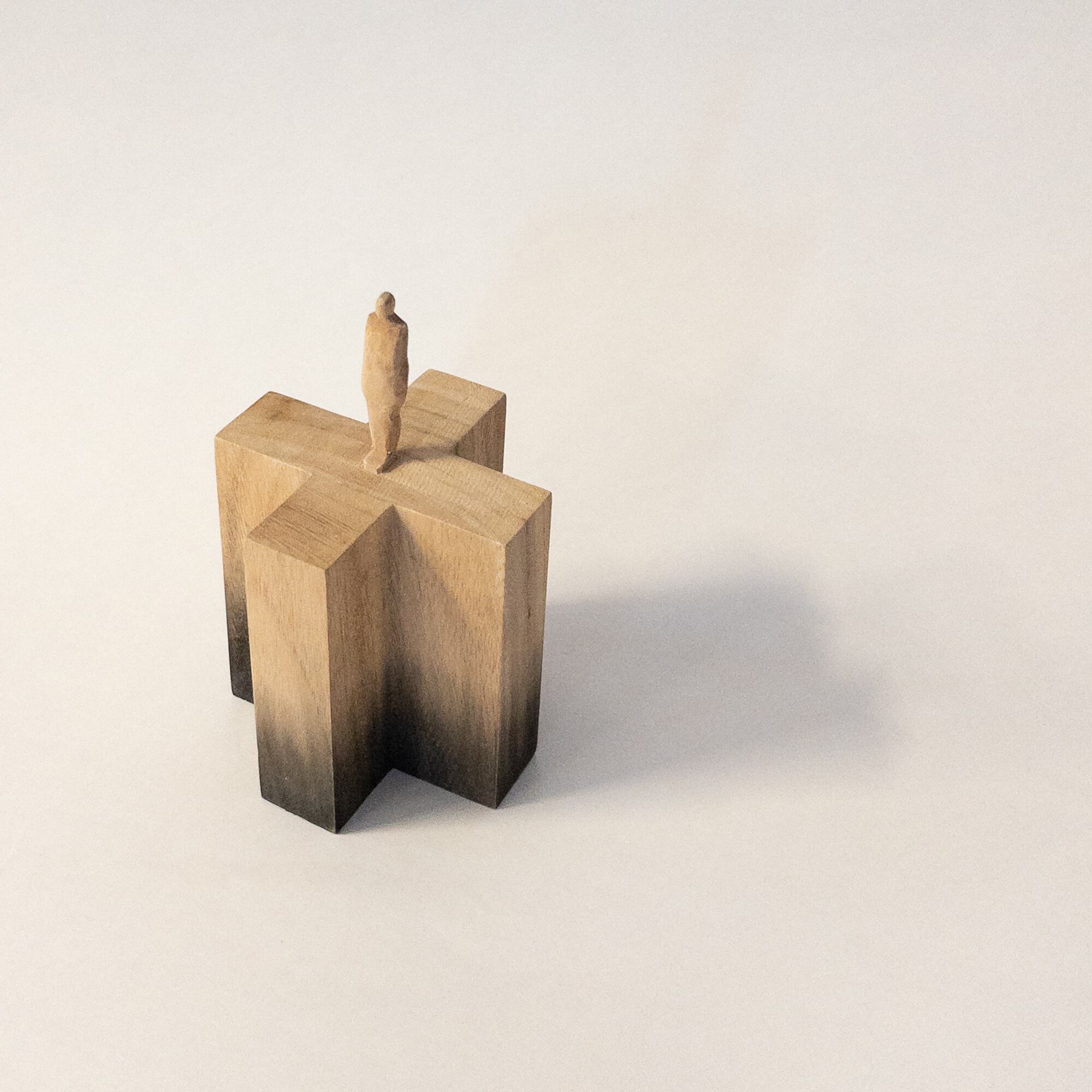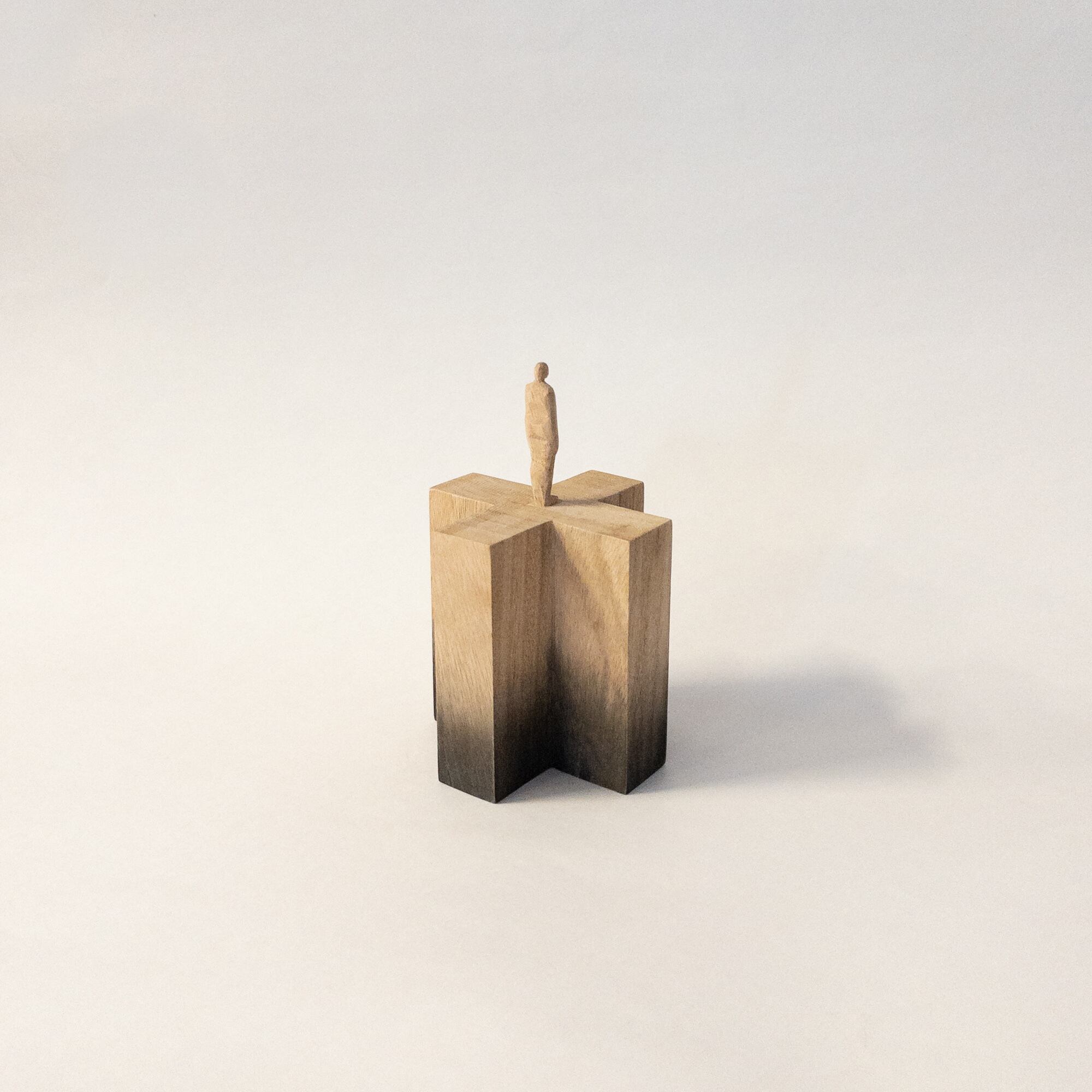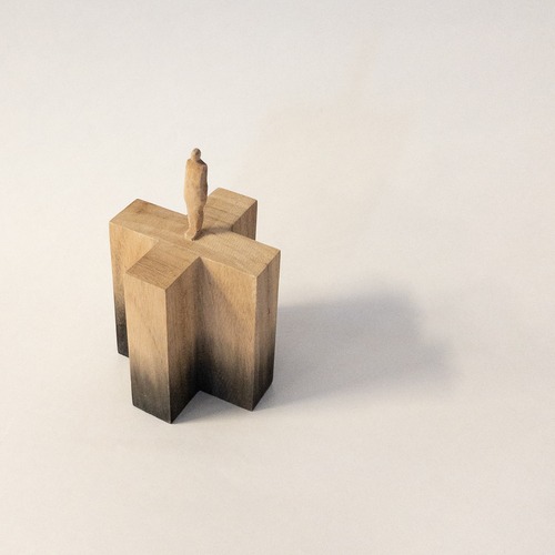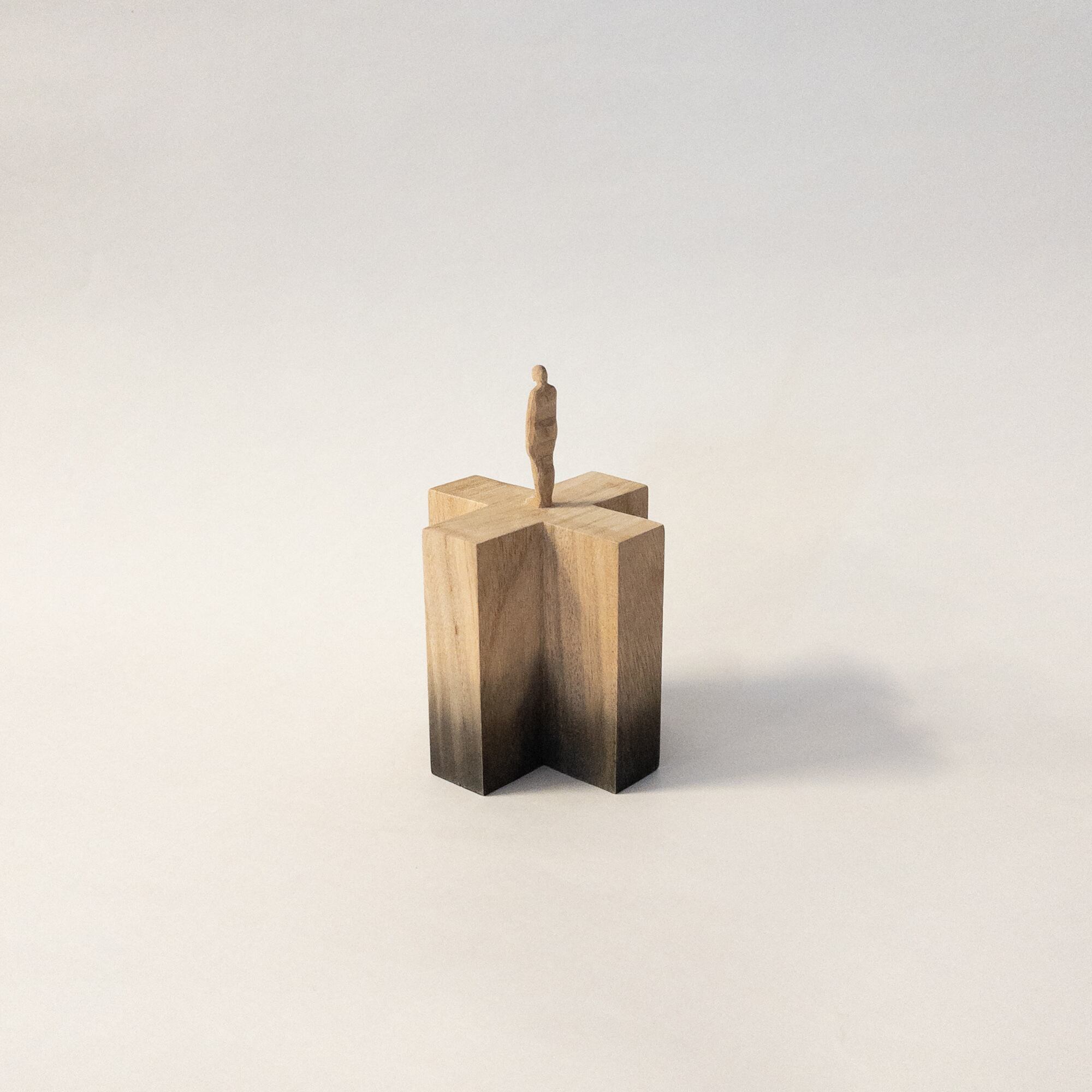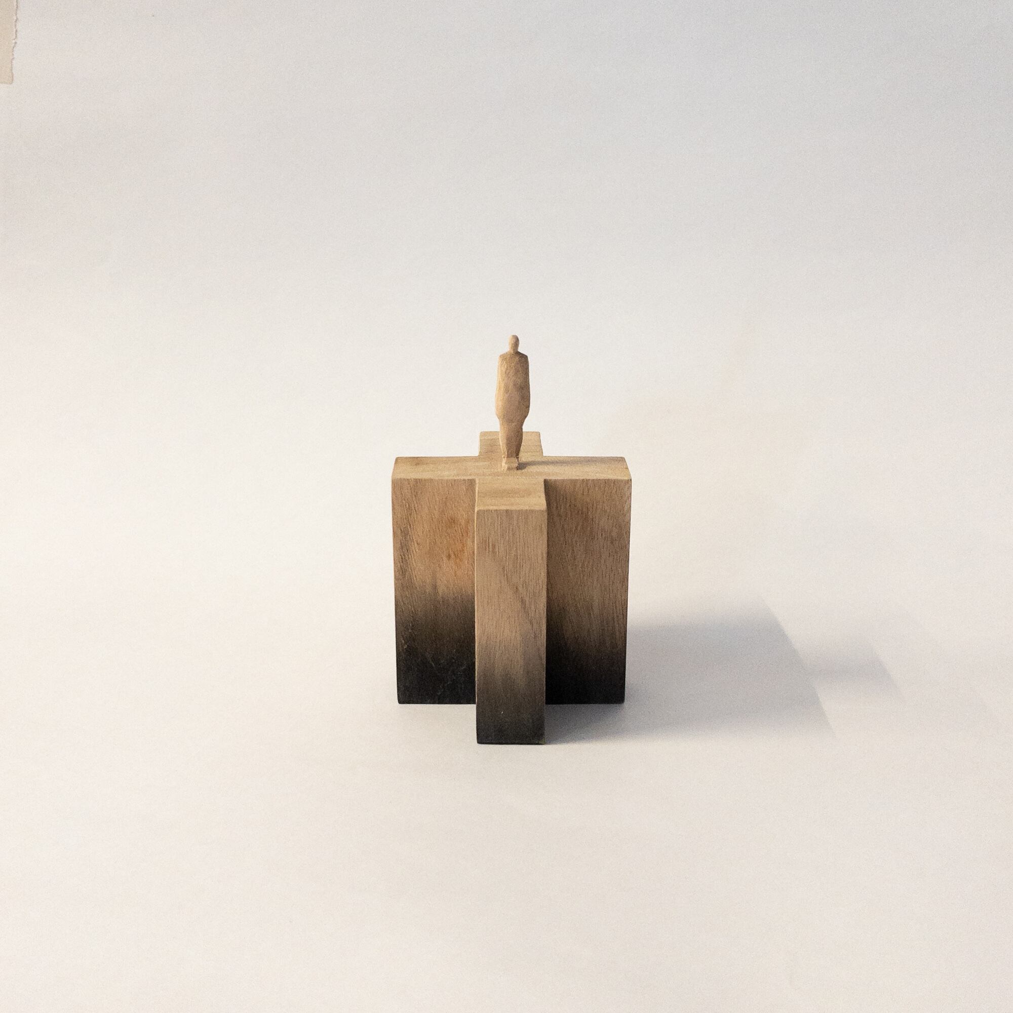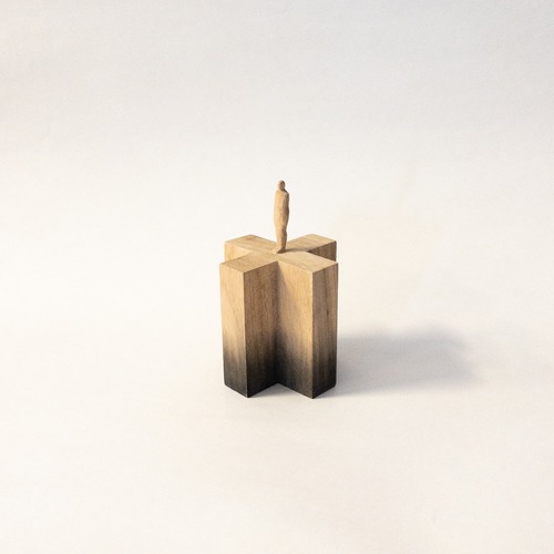 olectronicaの小さな木彫シリーズです。 一つの木から彫り出しています。 染色をしています。 サイズ:h112mm (人形部分40mm+台高72 × 幅70mm) 材質:木材