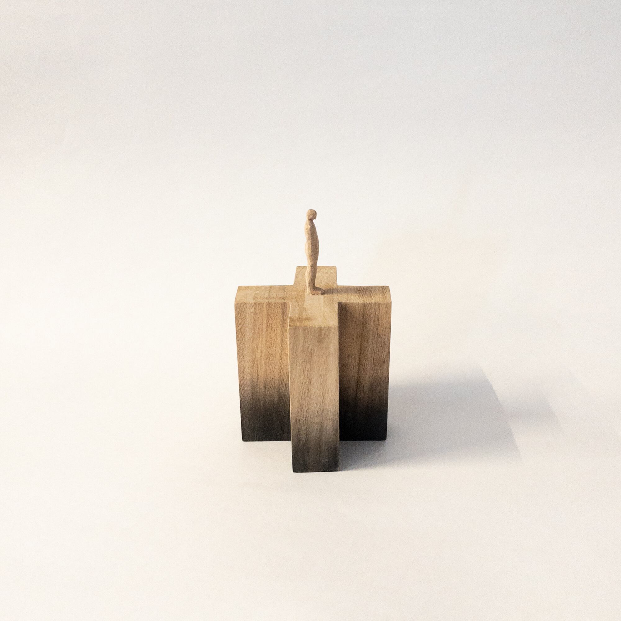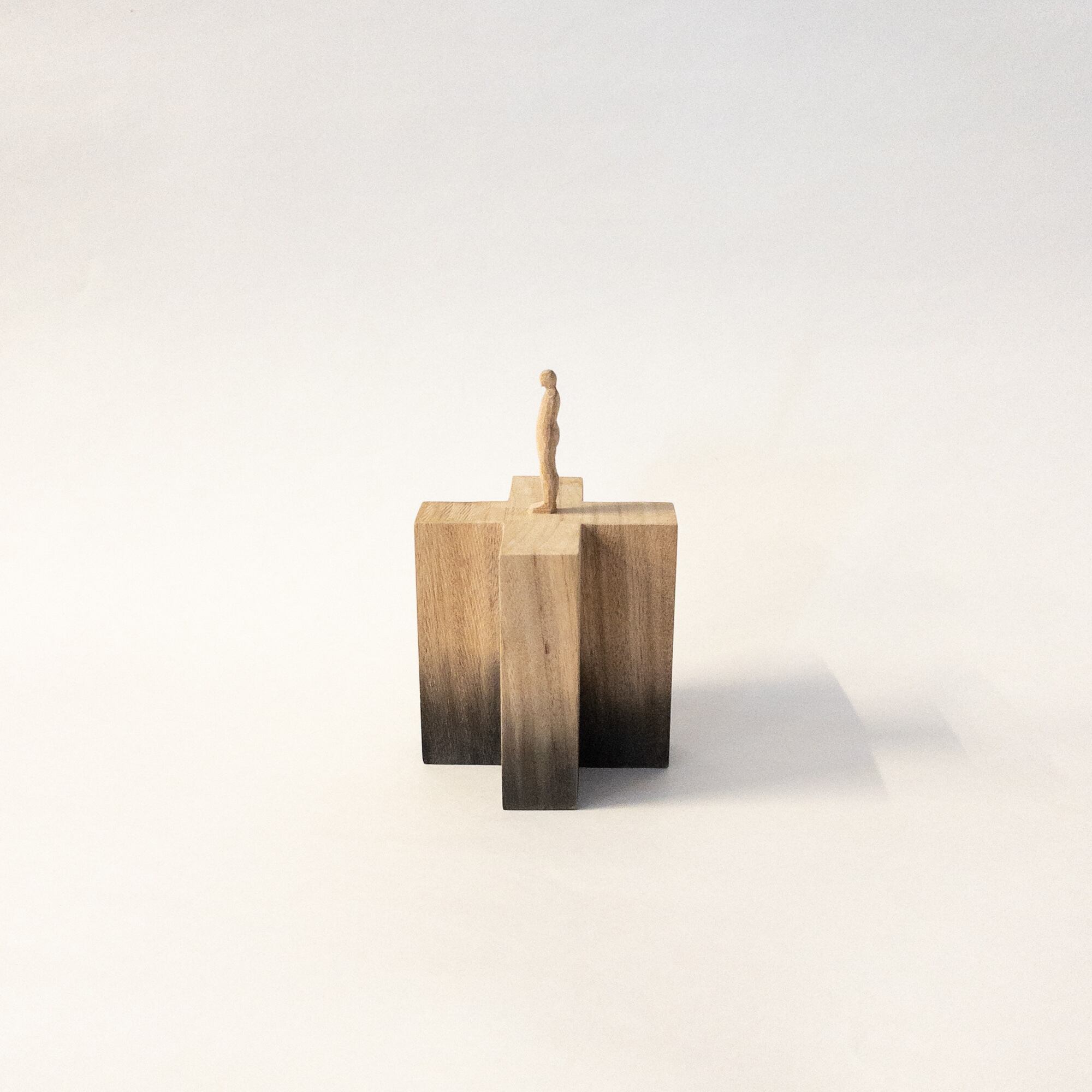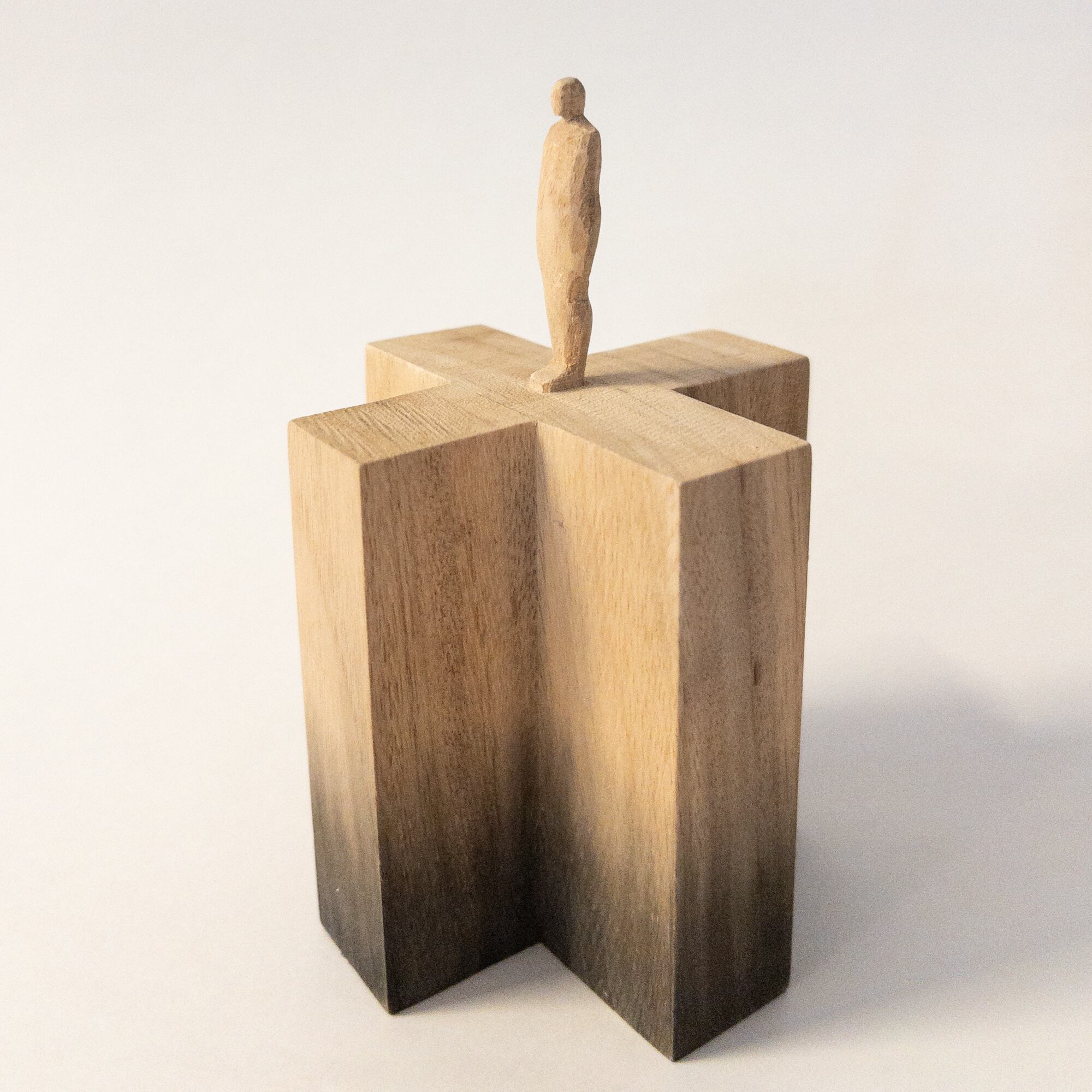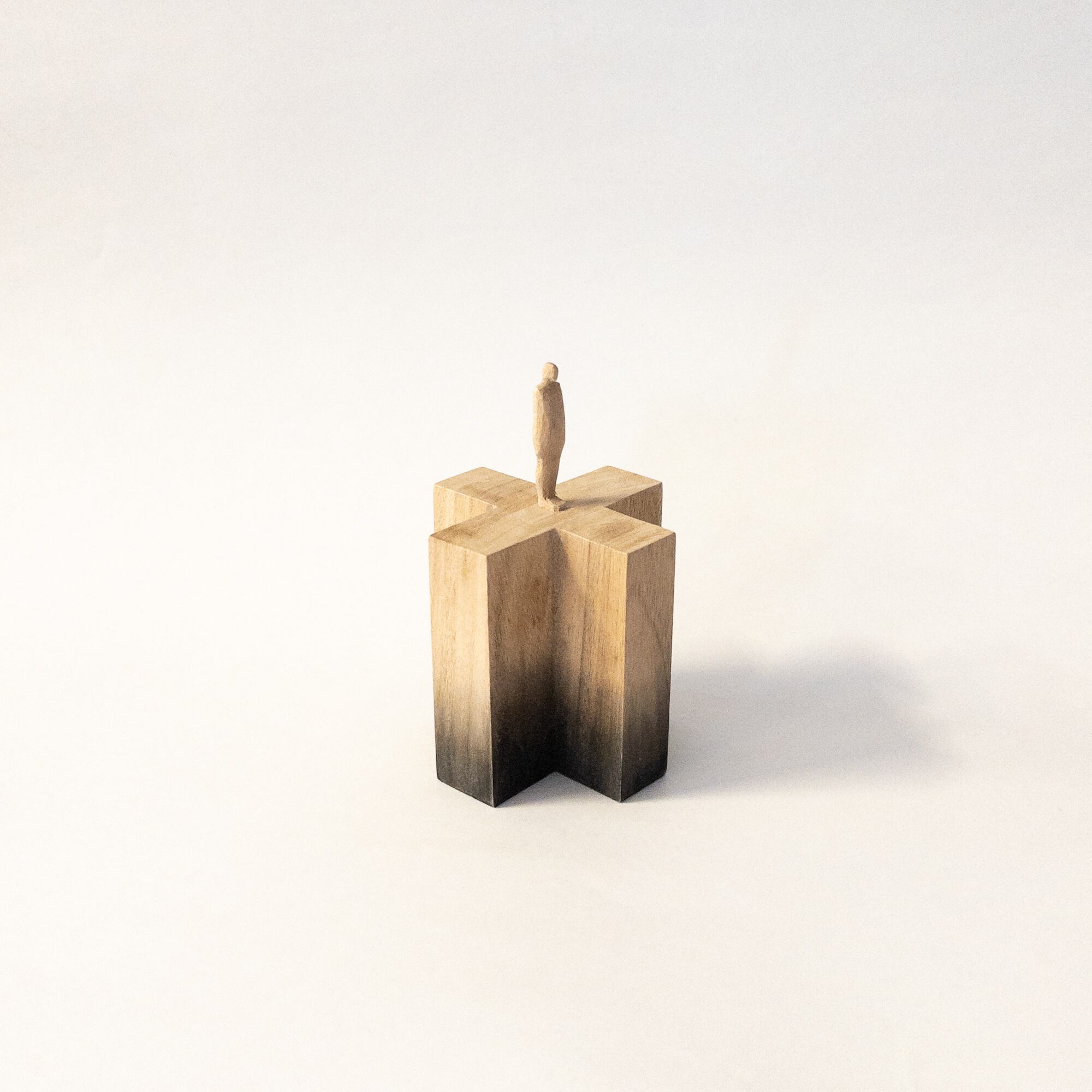 olectronicaの小さな木彫シリーズです。 一つの木から彫り出しています。 染色をしています。 サイズ:h112mm (人形部分40mm+台高72 × 幅70mm) 材質:木材